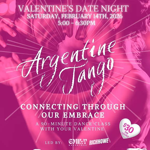 Join Emily and Rich for a 90-minute journey into "Advanced Hugging," where you'll use the principles of Argentine Tango to deepen your connection through awareness, touch, and music. Together, we will explore concepts and techniques that not only enhance your ability to navigate the dance floor (regardless of style) but also enrich your partnership in life, fostering greater care, respect, and harmony.